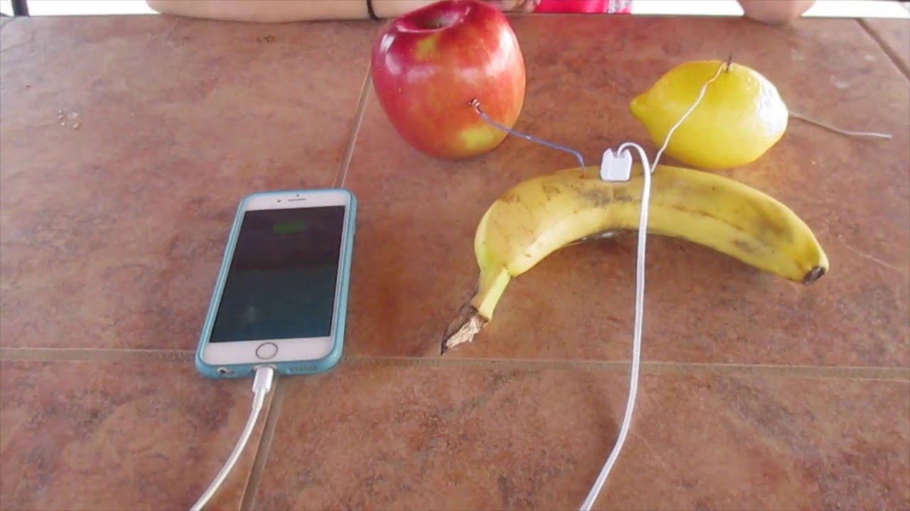 Can you charge a phone with fruit? - Answers Can you charge your phone using fruit? It is not very efficient, but you can charge a phone using fruit! It requires citrus fruit (Oranges, grapefruits, limes, lemons) a copper nail and a zinc nail... How to charge your iPhone without an outlet - Electronic ... Here are five creative ways to charge that do not require an outlet. 1. Use a campfire. So, if you happen to be on campsite and your battery is dead, you can use the PowerPot X to recharge. The pot provides electrical power, and when paired with a camp stove, the thermoelectric generator can produce a full 10 watts of max output (most tablets ... How to quickly use fruit battery to charge your iPhone ... The voltage of each fruit is about 0.5 volts, which up to about 5 volts to charge the cell phone. However, the charging time in this way will not be too long. Zinc flakes in fruits release zinc ions and energy at the same time. Zinc ions also displace copper ions, releasing more energy.