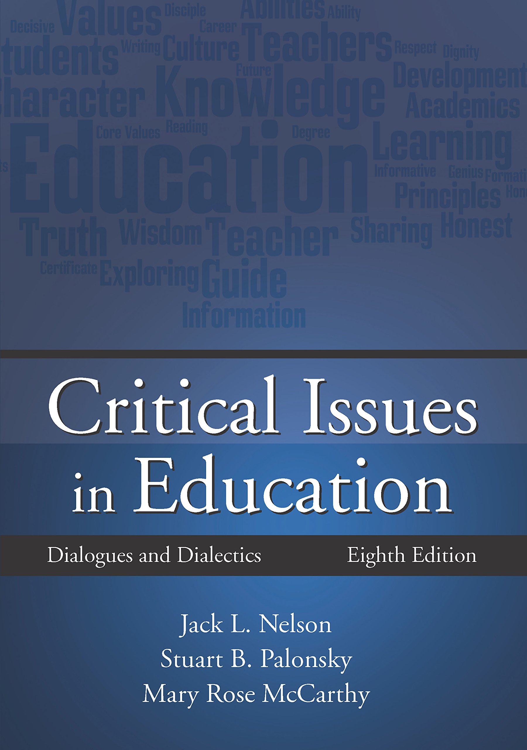Critical Issues in Education: Dialogues and Dialectics 9th ... Critical Issues in Education: Dialogues and Dialectics 9th Edition is written by Jack L. Nelson; Stuart B. Palonsky; Mary Rose McCarthy and published by Waveland Press. The Digital and eTextbook ISBNs for Critical Issues in Education: Dialogues and Dialectics are 9781478645795, 1478645792 and the print ISBNs are 9781478640455, 1478640456. Save up to 80% versus print by going digital with ... Critical Issues in Education Essay Example For FREE 📝 ... Critical Issues in Education The paper briefly describes the New Jersey Standard revision project and evaluates it success as channel for innovative change. Standards Revision Project The 2009 Core Curriculum Content Standards Revision Project was initiated by the New Jersey Department of Education. Critical Issues In Education: Dialogues & Dialectics ... Critical Issues in Teaching English and Language Education: International Research Perspectives [1 ed.] 9783030532963, 9783030532970. This edited book brings together a collection of research-based chapters that address a variety of topics related to the . 1,913 94 4MB Read more Waveland Press - Critical Issues in Education - Dialogues ... Critical Issues in Education examines three questions that are at the core of the education debate in the United States: What interests should schools serve? What knowledge should schools teach? How do we develop the human environment of schools? When answering these queries the authors advocate the use of critical thinking, which includes dialogue and dialectic reasoning.