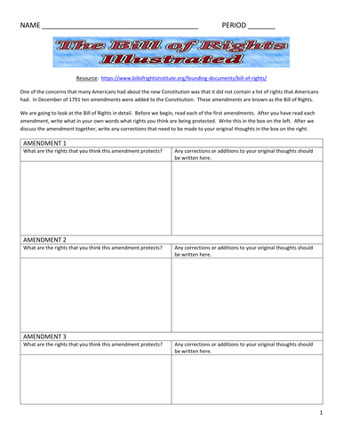 LESSON PLAN Bill of Rights and Other Amendments - USCIS Lesson Overview and Notes to Teacher: This lesson explains the concept of amendments and . the background of the Bill of Rights in relation to the Constitution. We recommend teaching the lesson on Benjamin Franklin and the U.S. Constitution prior to this one. This lesson covers details about the First Amendment and voting rights. Educator Hub - Bill of Rights Institute Bill Of Rights Institute Established in September 1999, the Bill of Rights Institute is a 501 (c) (3) non-profit educational organization that works to engage, educate, and empower individuals with a passion for the freedom and opportunity that exist in a free society. Learn More study.com › academy › lessonRights & Responsibilities Lesson for Kids - Video & Lesson ... Jan 09, 2022 · The Bill of Rights Lesson for Kids: Definition & Summary Making Healthy Nutritional Choices: Habits, Behaviors & Resources Responsibility Lesson for Kids: Definition & Quotes ... The Bill of Rights: lesson overview (article) | Khan Academy The Bill of Rights protects individual liberties and rights: The Supreme Court is responsible for hearing cases and interpreting the application of the provisions in the Bill of Rights. Since 1897, the Supreme Court has heard cases on potential state infringement of individual liberties and rights.
