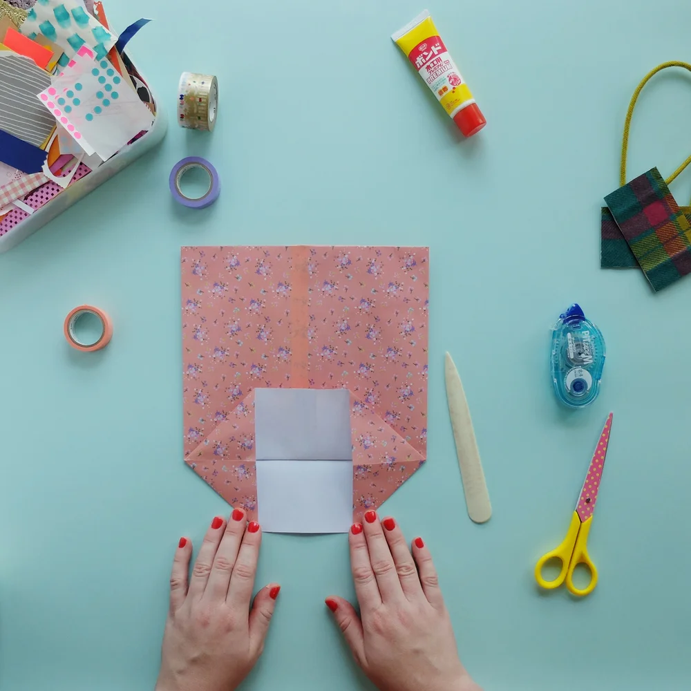 How to Make a Paper Bag: 13 Steps (with Pictures) - wikiHow Place a piece of decorative paper face-down in landscape orientation. Crease and unfold the bottom of the bag, and fold both sides inward. Give your bag an accordion effect by folding in the side creases. Secure the bottom of the bag by folding and gluing the paper down. Create fun handles for your bag with a hole punch and 2 lengths of ribbon.