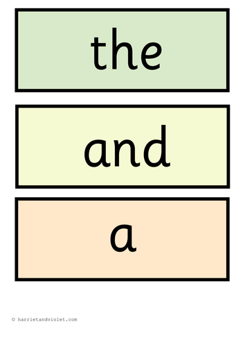 100 High Frequency Words (HFWs) Display/Flashcards 100 High Frequency Words with a black border. All words have a pastel coloured background. A free teaching resource for an EYFS, KS1 & KS2 classroom. Print full size to use as a classroom display or print multiples to reduce the size for flashcards or to hide in the sand for children to dig up! Tes classic free licence