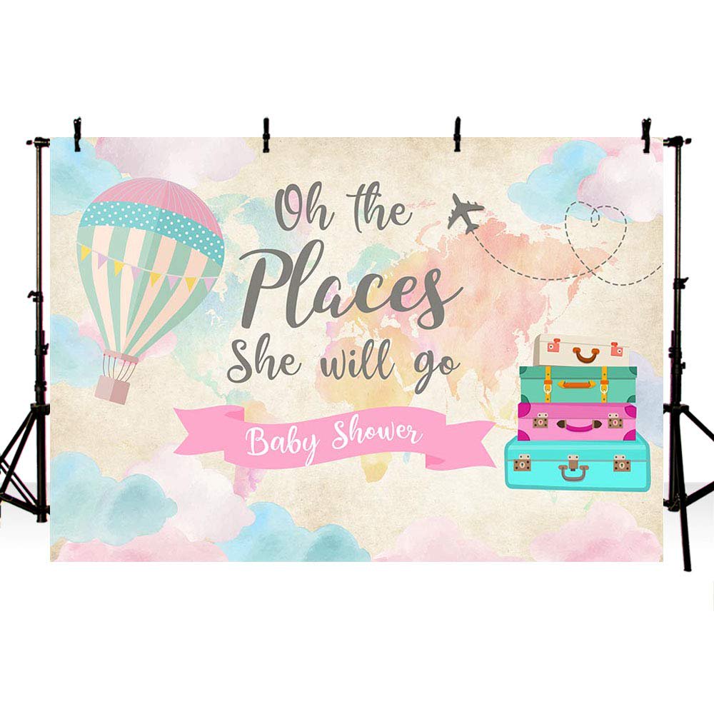 MEHOFOND 7x5ft Travel Map Birthday Party Decorations Backdrop Travel Around The World Hot Air Balloon Oh The Places You Will Go Baby Shower ...