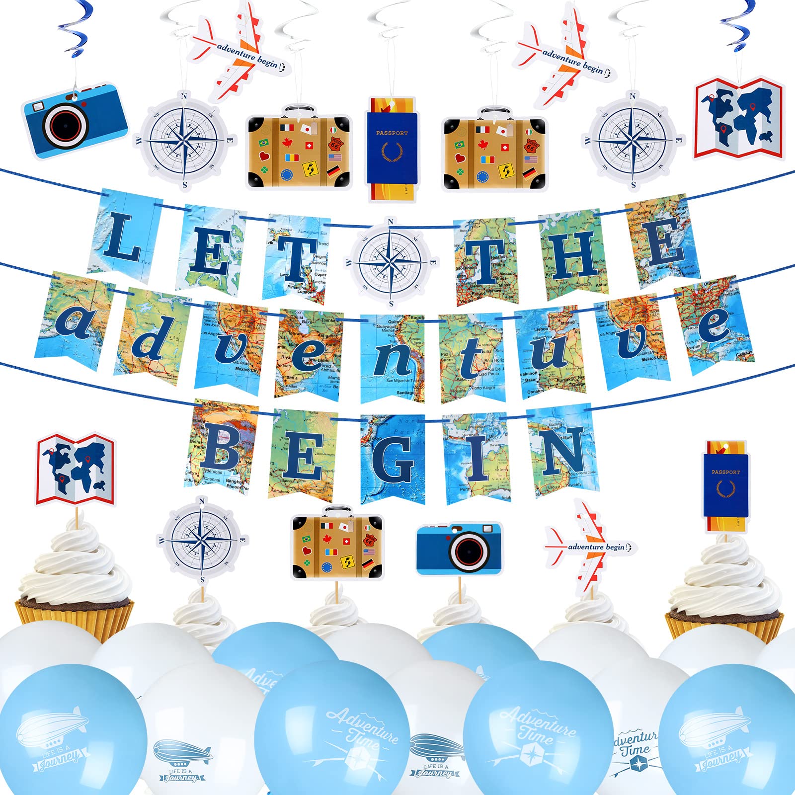 Travel Theme Birthday Party Supplies Around The World Party Decorations Kits Set with Latex Balloons Cake Topper Backdrop Napkins Plates Tablecloth ...