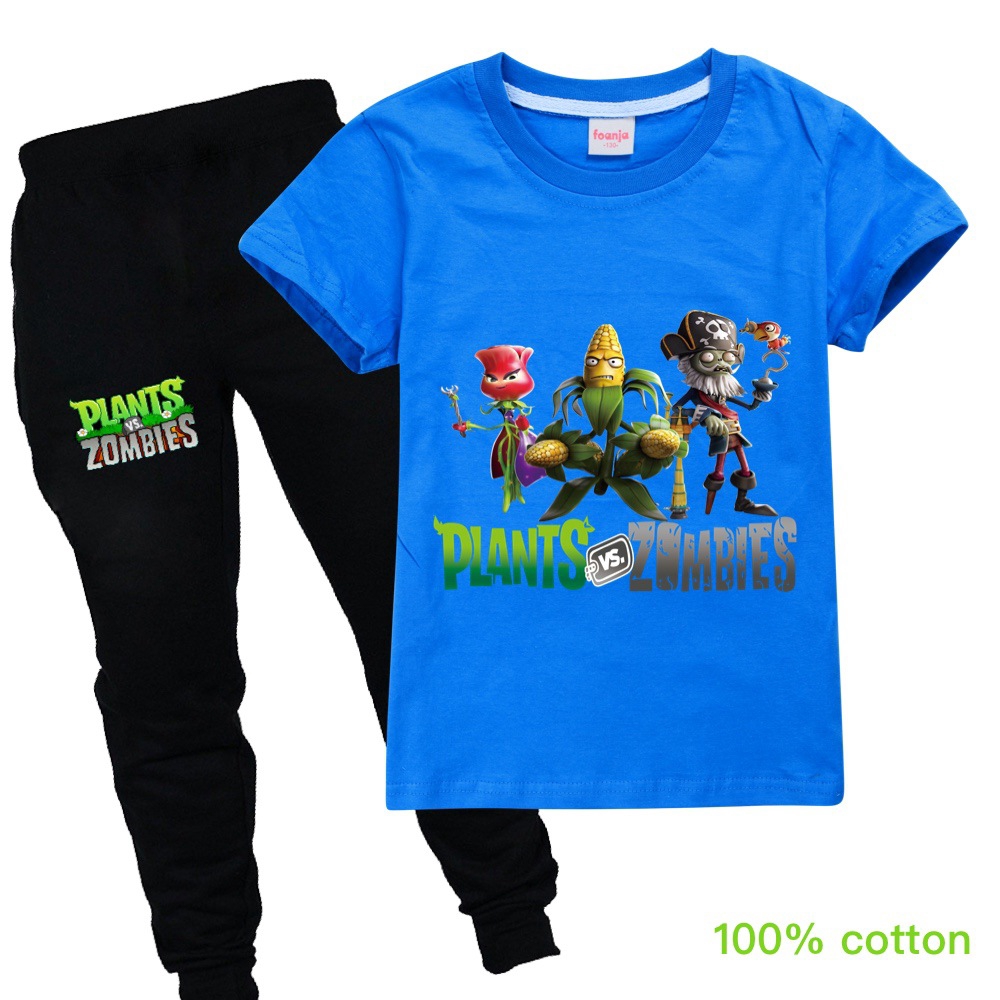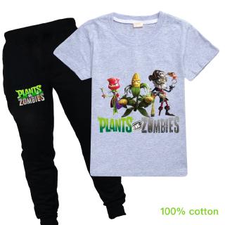 plants vs zombie T-shirts Kids long pants suit for boys and girls two-Pieces cartoon tee shirt gifts