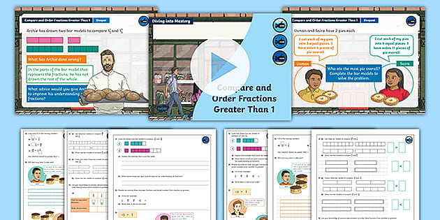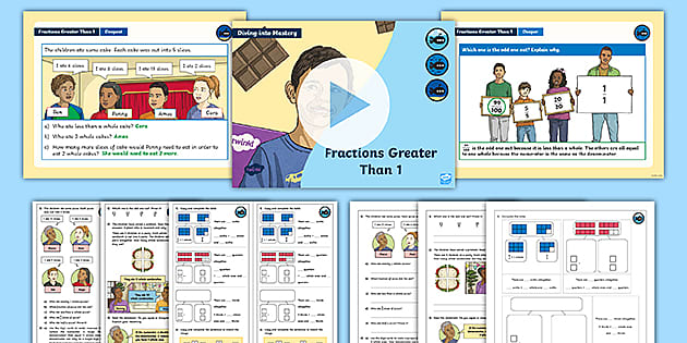 Adding fractions (with a total greater than one) Adding fractions (with a total greater than one) In this lesson, we will explore fractions that total one or greater than one using fraction bars to support understanding. This quiz includes images that don't have any alt text - please contact your teacher who should be able to help you with an audio description. Comparing Fractions Worksheets - Math Worksheets 4 Kids Comparing Fractions Worksheets. Our printable comparing fractions worksheets for grade 3 and grade 4 help children compare like fractions, unlike fractions, and mixed numbers with nuance and range. Shepherd kids through a plethora of number line diagrams, bar models, pie models, shapes, and reams of practice exercises. Fractions greater than 1 on the number line - Khan Academy Fractions greater than 1 on the number line Math > 3rd grade > Understand fractions > Fractions on the number line © 2023 Khan Academy Terms of use Privacy Policy Cookie Notice Fractions greater than 1 on the number line CCSS.Math: 3.NF.A.2 , 3.NF.A.2b Google Classroom About Transcript Sal plots fractions greater than 1 on the number lines. Year 4 - Fractions greater than 1 | Teaching Resources Year 4 - Fractions greater than 1 Subject: Mathematics Age range: 5-7 Resource type: Worksheet/Activity 1 review File previews Creative Commons "Sharealike" Report this resource to let us know if it violates our terms and conditions. Our customer service team will review your report and will be in touch. Last updated