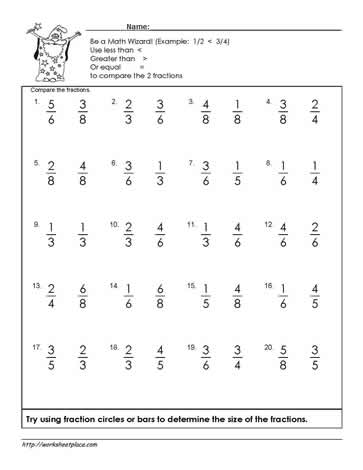 What fractions are greater than 1/2? | Wyzant Ask An Expert There are an infinite number of fractions greater than 1/2. The words, "and so on" indicate that there are many more, in fact an infinite number. It is not possible to write an infinite number of fractions, so the words "and so on" refer to the remaining fractions not stated. Report 04/08/20 Jaden J. is 13/20 greater than 1/2 Report 10/28/20 Fractions Greater than 1 | Mathematics Quiz - Quizizz answer choices. numerator and denominator must be 1. numerator should be bigger than the denominator. numerator and denominator should be the same number. numerator and denominator should be different numbers. Question 10. 120 seconds. Q. In order for a fraction to be greater than 1, the... Comparing Fractions Calculator The fraction with the bigger numerator is the larger fraction. Example: Compare 5/6 and 3/8. Find the LCD: The multiples of 6 are 6, 12, 18, 24, 30, etc. The multiples of 8 are 8, 16, 24, 32, etc. The lowest common multiple is 24 so we use that as the lowest common denominator. Convert each fraction to its equivalent fraction using the LCD. Fractions - KS2 Maths - BBC Bitesize Fractions greater than 1. A Maths article on how to represent fractions that are greater than 1. Introduction to fractions. In this Maths article, learn how to identify and understand fractions.