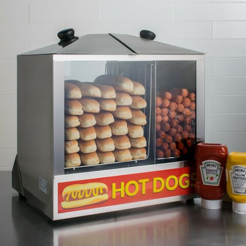 Hot Dog Machines: Cookers, Bun Steamers, & More - WebstaurantStore plus Avantco 30 Hot Dog Non-Stick Roller Grill with Sneeze Guard and 32 Bun Warmer $659.00 /Each plus Grand Slam HDRG12 12 Hot Dog Roller Grill with 5 Rollers - 110V, 750W $99.99 /Each $138.49 plus Carnival King HDRG18 18 Hot Dog Roller Grill with 7 Rollers and Glass Sneeze Guard - 120V, 910W $139.99 /Each