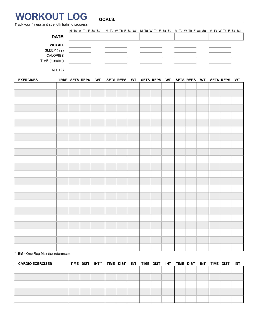 Free Printable Workout Log | Exercise Training Logs There are a number of free printable workout and exercise logs available on the Internet, as well as some excellent exercise logs that can be purchased at your local bookstore. However, after taking a look at the dozens of free blank exercise log sheets available on the web, I generally found that they didnt treat exercise holistically enough.