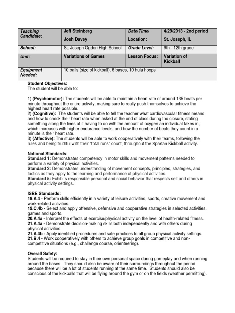Variation of Kickball Lesson Plan | PDF | Psychological ...