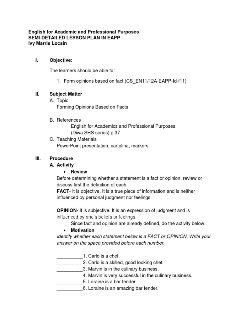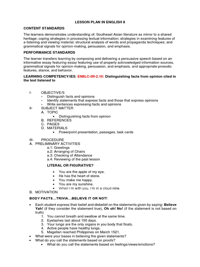 Fact and opinion lesson plan