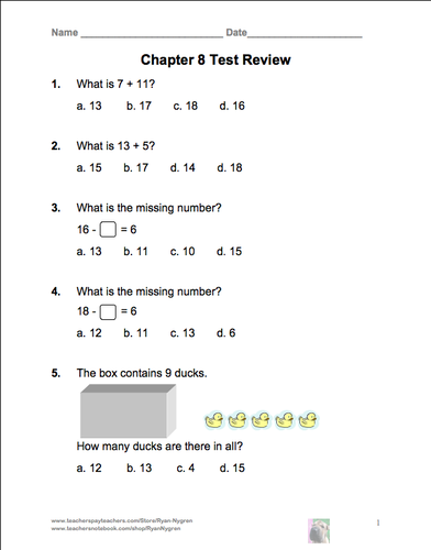 Singapore 1st Grade Chapter 8 Math Test Review (6 pages ...