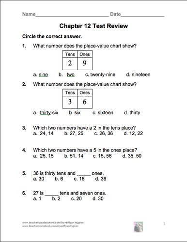1st Grade Math Test | Tens and Ones Math Test | Mathematics ...