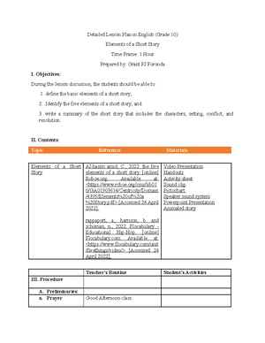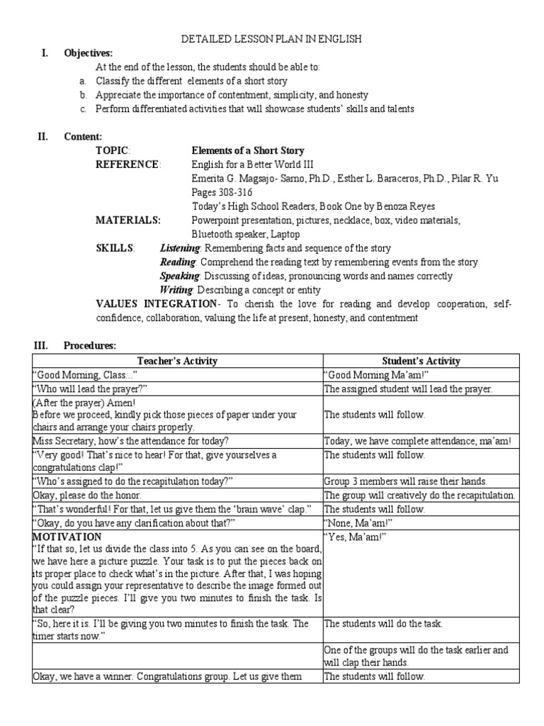 DLP in Elements of Short Story.docx - Detailed Lesson Plan in ...