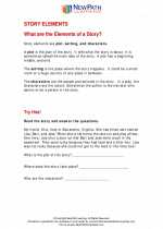 Story elements worksheets and online exercises Story elements worksheets and online activities. Free interactive exercises to practice online or download as pdf to print. ... Final Assessment - Story Elements Graphic Organizer Grade/level: 9-11 by josellieopao: Story-chart Grade/level: 4 by ms_pasztor: Henny Penny Sequencing Grade/level: K,1,2 5 Elements of a Story Explained (Free Worksheet) | Imagine Forest It's the five elements of a story: Characters, Setting, Plot, Conflict and Resolution. Story elements are needed to create a well-structured story. It doesn't matter if you're writing a short story or a long novel, the core elements are always there. Table of contents [ Hide] What are Story Elements? 5 Elements Of A Story 1. Characters 2. Setting Story Structure Worksheets | Reading Activities Students read a motivational story and identify the story structure parts: exposition, rising action, climax, falling action, and resolution. This activity includes a skill sheet that tests students' understanding of other reading skills as well. Suggested reading level for this text: Grade 5-9. "When Gertrude Grew Great" Links Preview Edit Print