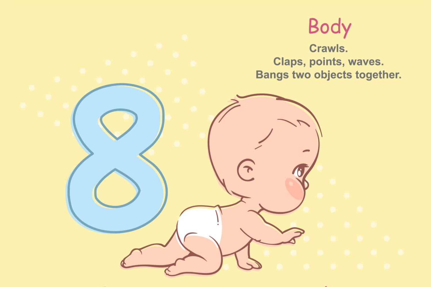 Baby Development: Your 8-Month-Old - WebMD Nov 28, 2022 · Eighth Month Baby Milestones: Sleep By their eighth month, most babies sleep an average of 13 to 14 hours a day. They’ll take two naps a day, one in the morning and one in the afternoon.... 8-Month-Old Milestones in Baby Development: What to Expect Feb 3, 2022 · 8-month-old baby milestones Motor skills. An eight-month-old baby is getting lots of new energy and strength. ... Most babies start crawling around... Eating habits and needs. Your 8-month-old baby may be consuming between 24 and 32 ounces of breast milk or formula every... Sleeping times. An ...