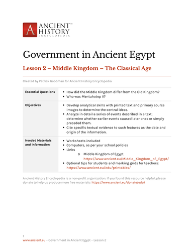 Ancient Egypt Teaching Resource Bundle (21 Lesson Plans) This Ancient Egypt Teaching Resource Bundle is a collection of teaching resources that you can download for free. Our teaching resources and lesson plans are adapted to students' different levels of ability as well as teaching environments: Teachers and educators can use them in their classroom but also at home or in online classes, with small ...