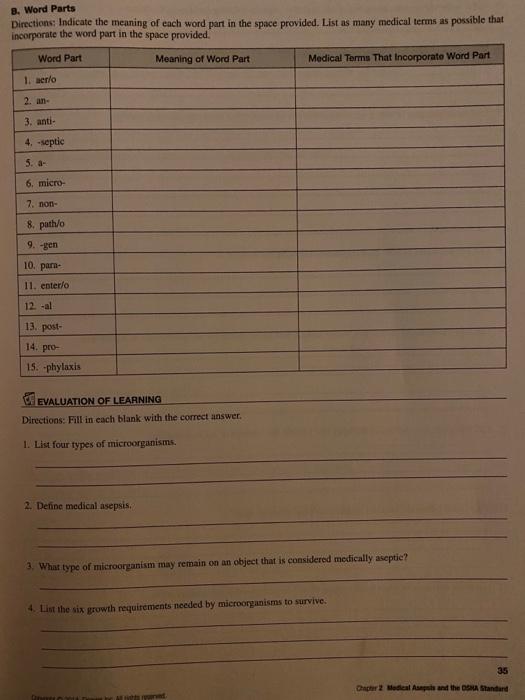 Meaning of word parts. PDF Glossary of Word Parts - University of California, Berkeley Word Part Type Meaning hypo- prefi x below, under, defi cient hyster(o)- combining form uterus-i suffi x indicates plural of the root-ia suffi x condition of, process of, state of-iasis suffi x condition of, process of, state of iatr(o)- combining form "physician"-ic suffi x pertaining to-ical suffi x pertaining to Root Words, Roots and Affixes | Reading Rockets Affixes. One method of understanding the meanings of new words is to analyze the different parts of the word and the meanings of those parts. Many new words are formed by adding an affix to the beginning or end of a Latin or Greek root or root word. When affixes are added to the beginning of roots or root words, they are called prefixes For example, the most common prefix is un-, which meant ... Part definition and meaning | Collins English Dictionary part is the general word: part of a house. A piece suggests a part which is itself a complete unit or it may mean an irregular fragment: a piece of pie; a piece of a broken vase. A portion is a part allotted or assigned to a person, purpose, etc.: a portion of food. Word Parts in Medical Terminology Flashcards | Quizlet Word Parts in Medical Terminology -ic, -an Click the card to flip 👆 suffixes meaning pertaining to Click the card to flip 👆 1 / 51 Flashcards Learn Test Match Created by Dimple_Matz Terms in this set (51) -ic, -an suffixes meaning pertaining to -algia meaning pain and suffering -itis meaning inflammation -ologist meaning specialist -pathy
