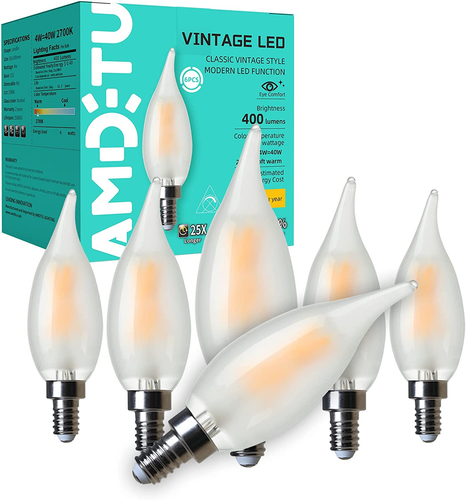 AMDTU E12 LED Chandelier Light Bulb-Frosted 40 watt Type B Candelabra Light Bulbs,Dimmable 2700k Soft White,for Ceiling Fan,Dining Room,Light ...